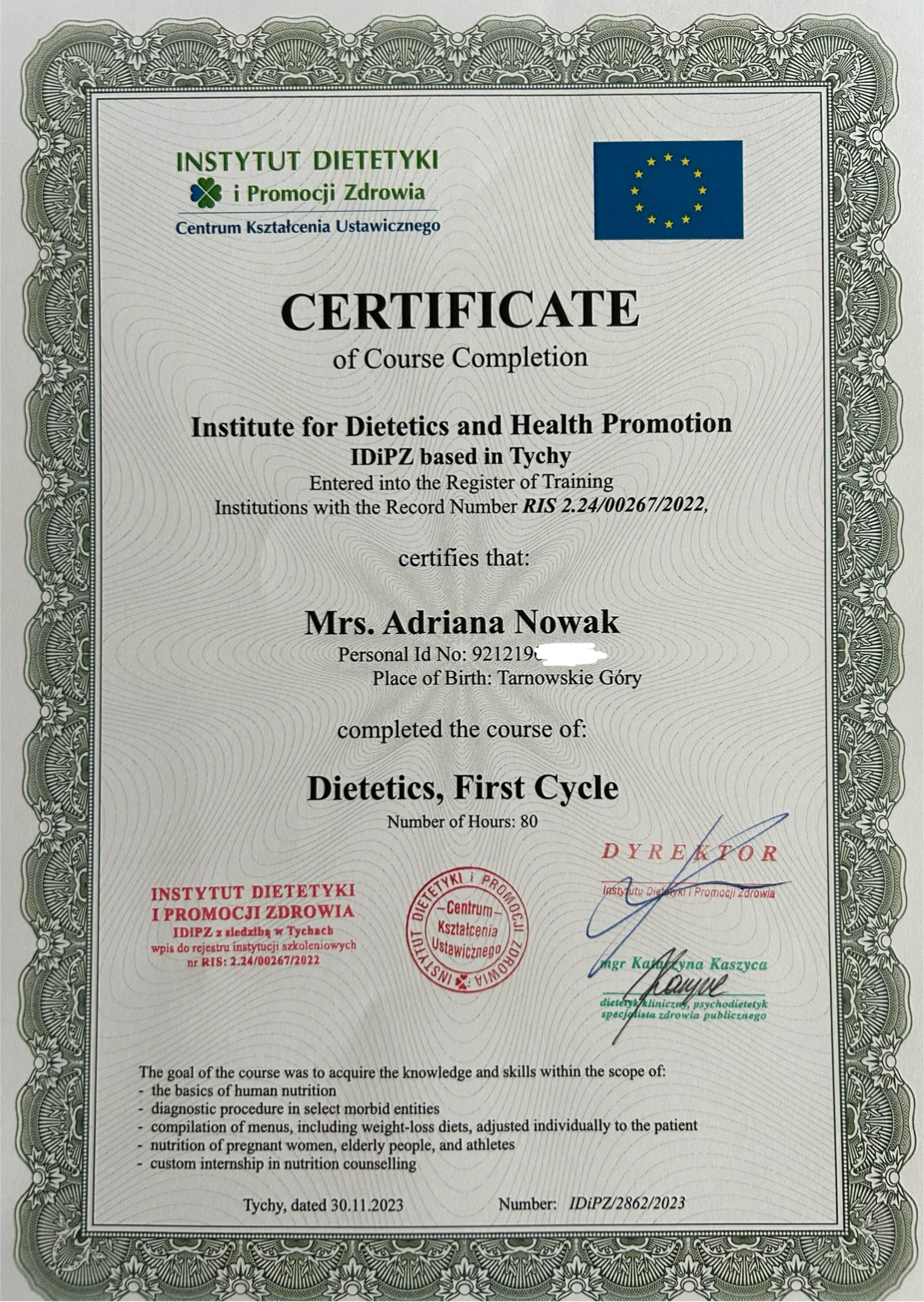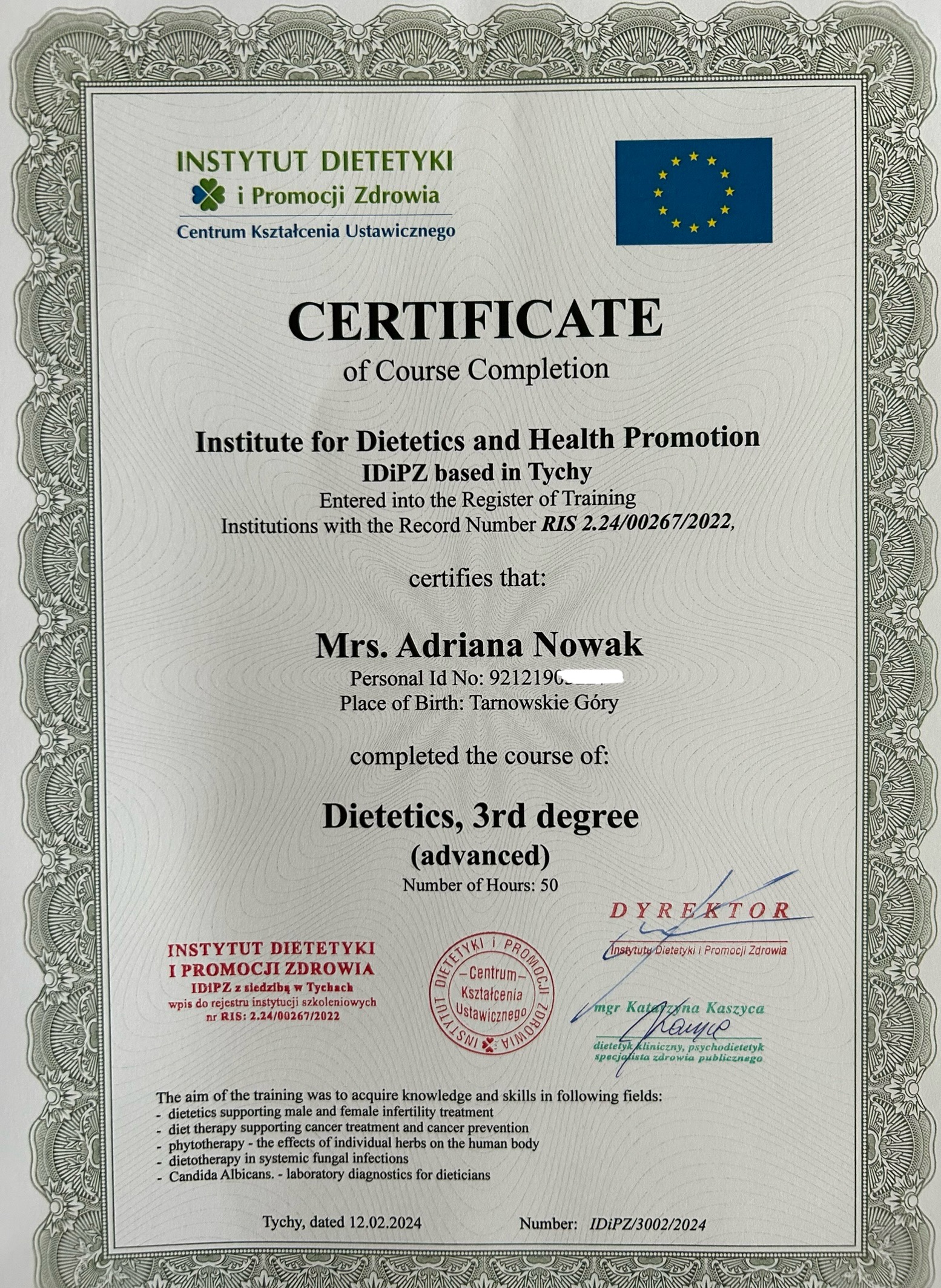 Nazywam się Adriana Nowak, jestem specjalistką żywienia z pasji do jedzenia, pomagam zmienić nawyki żywieniowe dostosowane do indywidualnych potrzeb pacjenta.